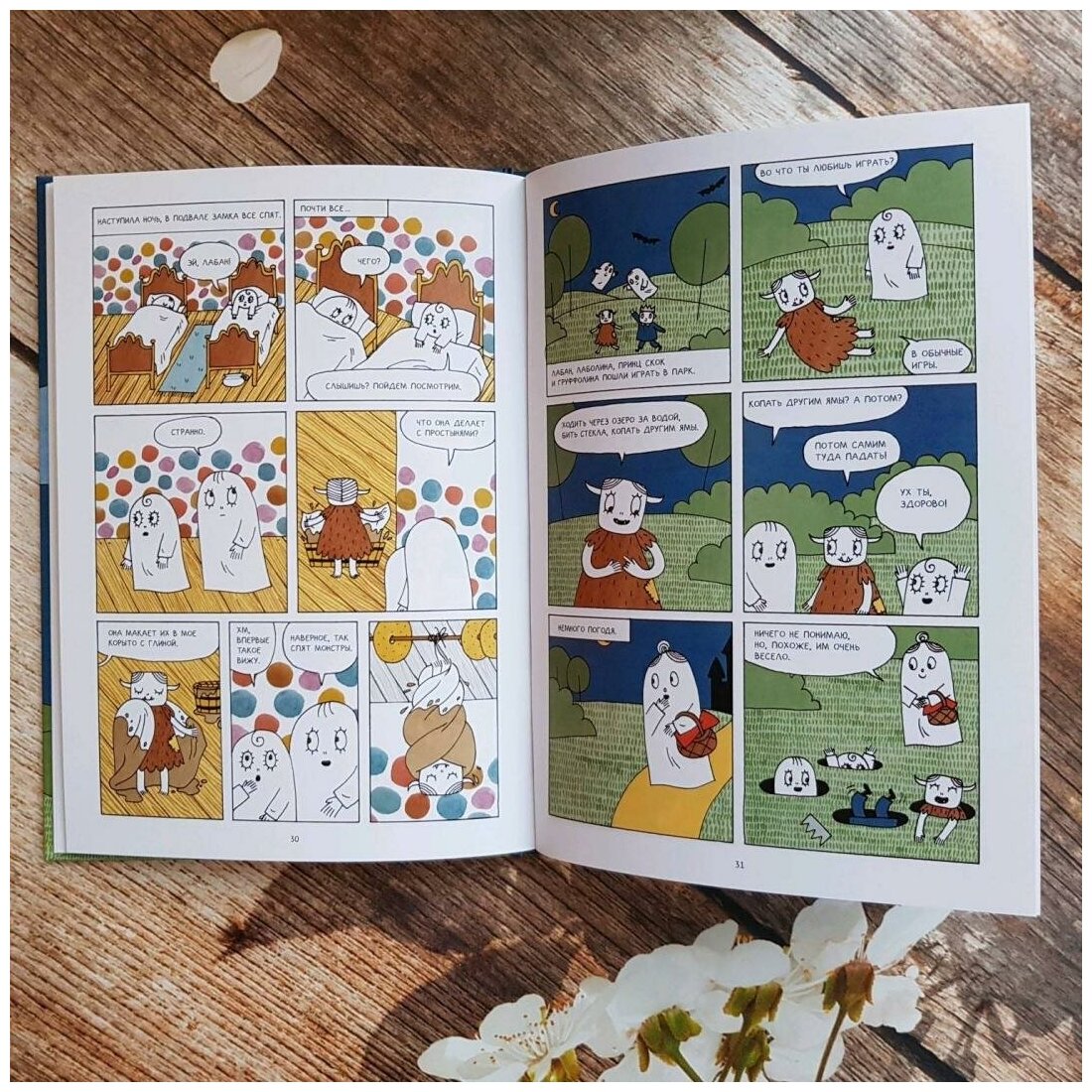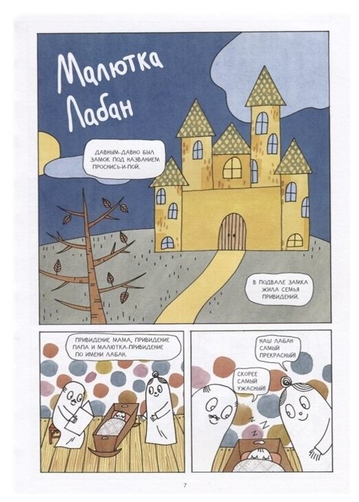 Рисованные истории о приключениях маленького привидения и его друзей, в которых читатели знакомятся с малюткой Лабаном, его сестрёнкой Лаболиной и принц Скок. А те в свою очередь заводят друзей по переписке: встречаются с Груффолиной и попадают на приём к королю, а также провожают тётушку Герду на пенсию, сражаются с уборочной машиной волшебника и помогают папе выполнять его нелегкую работу, пока тот болеет.