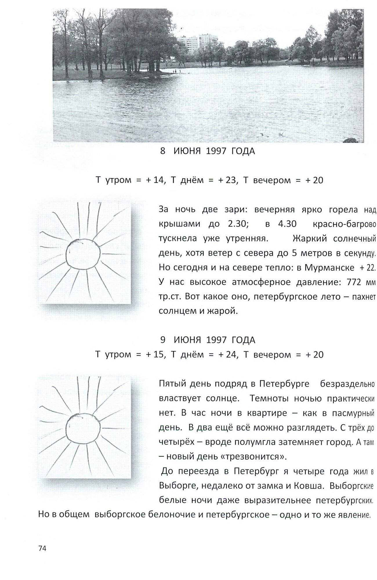 Уникальная книга о петербургской погоде. Едва ли еще найдется такой идиот, который ежедневно в течение десяти лет наблюдает и записывает всё, что происходит с погодой. Притом делает это в разных городах с маниакальным постоянством. Новосибирск, Выборг, Петербург, Москва открыли свои погодные прелести для наблюдений автора. Описывая практически одни и те же явления из года в год, можно скатиться к шаблонным словам, к избитым фразам, к постоянным эпитетам. Автору приходится изощряться в словотворчестве, чтобы одинаковые дни описать разными словами. Если не хочешь быть скучным- становись Ван Гогом литературы.