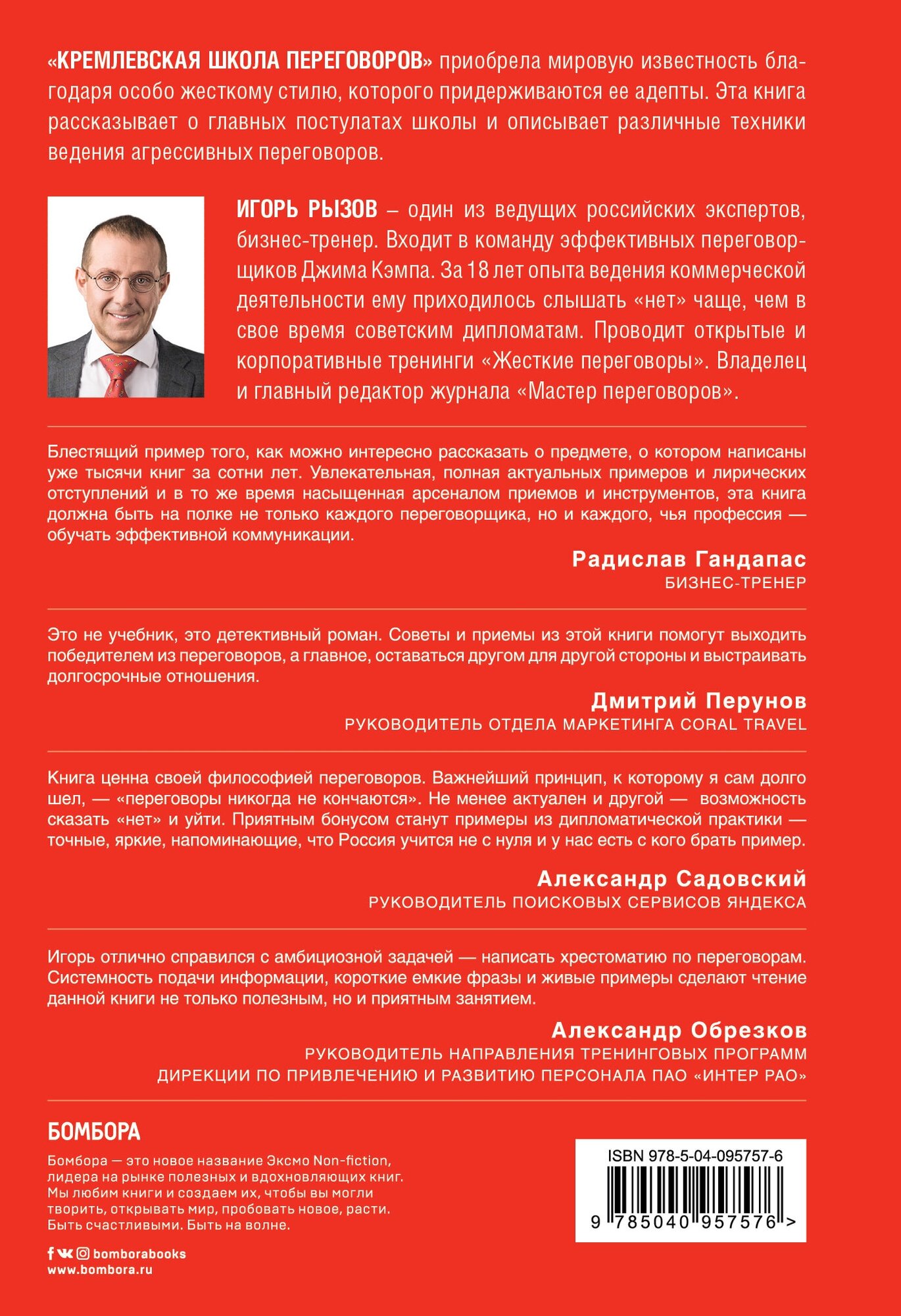 "Кремлевская школа переговоров" - приобрела мировую известность из-за особо жесткого стиля ведения переговоров, которого придерживались её адепты. Эта книга рассказывает о главных постулатах рассматриваемой школы и описывает различные техники ведения агрессивных переговоров.