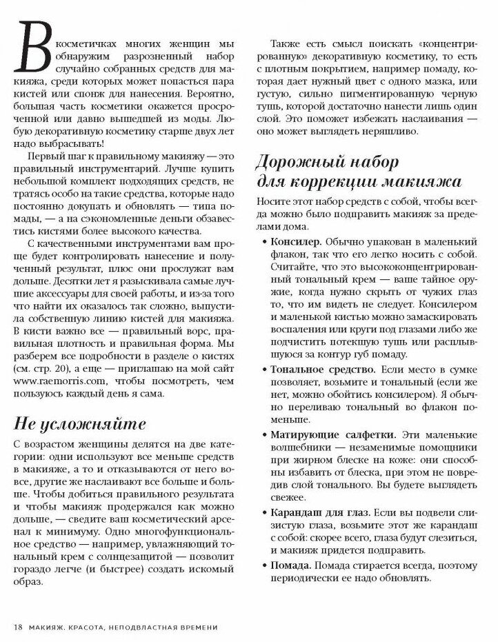 Не сказала бы, что я старушка, но я точно женщина, как говорится, «в самом расцвете сил». Уже смирилась с тем, что придется отказаться от макияжа, поскольку кожа уже не такая упругая и увлажненная, вся косметика скатывается и оседает в морщинках. Но книга открыла мне глаза – я снова могу краситься и выглядеть безупречно! В книге Рэй Моррис есть те образы, которые не только мне подходят, но и делают мое лицо на несколько лет моложе.