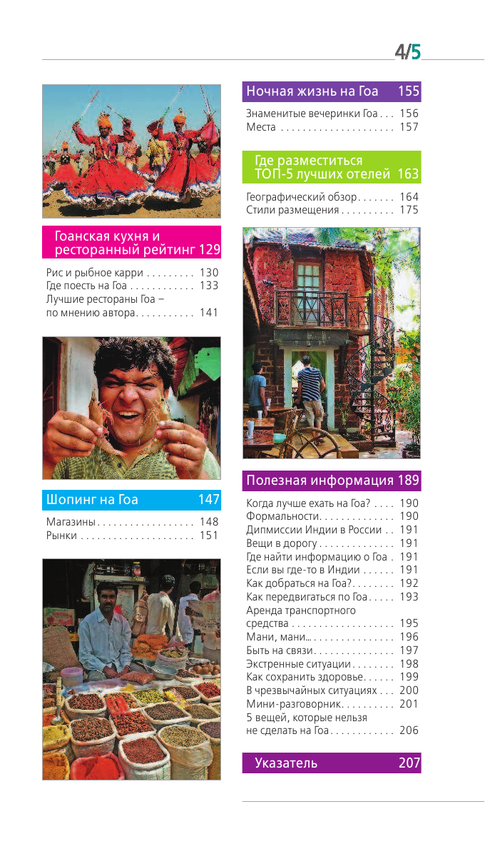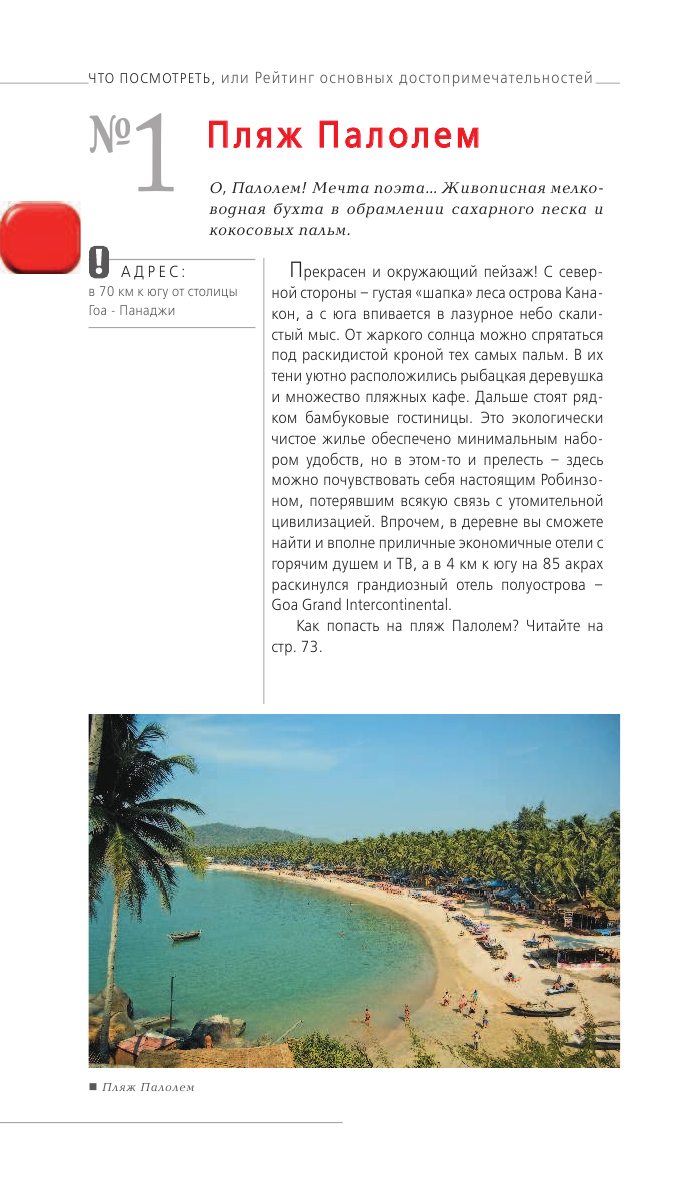 В книге написано обо всем, но очень поверхностно. Она подходит для того, чтобы создать общее впечатление, а потом по интересующим темам найти дополнительную информацию в интернете и для того, чтобы взять с собой в качестве справочника, размеры очень подходящие. Карты довольно подробные, а вот разговорник ужасный - транскрипция на ломанный английский. В другом путеводителе нашла подробный разговорник с переводом фраз на индийские диалекты с транскрипцией и их написанием на индийском.