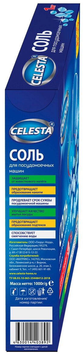Соль Celesta для посудомоечных машин 1 кг Celesta Clean&Shine (403892)