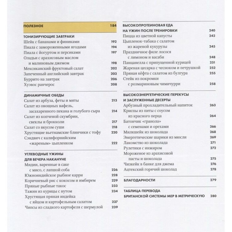 Чудесная книга как для поклонников Гордона Рамзи, так и для людей, ведущих здоровый образ жизни. Книга разбита на три части: здоровое, легкое, полезное. В каждой части приводятся варианты завтраков, обедов и ужинов. Даже есть рецепты для спортсменов. Люди, не употребляющие глютен, сахар, молочное (я в их числе), тоже найдут для себя много интересного. Возможно, не все продукты можно найти в "магазине рядом с домом", но с нынешним развитием онлайн-торговли и распространением принципов ЗОЖ, думаю, это не станет проблемой. Тем более, что для некоторых рецептов Гордон дает советы по замене продуктов (что-то можно подобрать самим, напр., заменить обычную овсянку на овсянку без глютена). Для всех рецептов есть таблица с КБЖУ. В конце идет таблица перевода единиц измерения. Пригодится всем, кто стремится внести разнообразие в рацион, освоить новые техники приготовления или открыть для себя новые сочетания продуктов и при этом не стоять часами у плиты. Очень вдохновляющая книга: освоив рецепты, можно придумывать свои варианты.