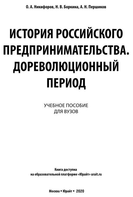 История российского предпринимательства. Дореволюционный период. Учебное пособие для бакалавриата и магистратуры (Никифоров Олег Александрович, Боркина Наталья Викторовна, Першиков Анатолий Николаевич); ЮРАЙТ, 2022