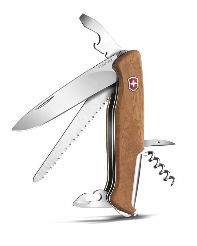 Нож со складным лезвием Victorinox дерево, функций: 10, Нож, пила, консервный нож, открывалка, штопор, 2 отвертки, сниматель изоляции, шило, кольцо для ключей., размер 130мм, длина лезвия 95мм, сталь 1.4110 (0.9561.63)