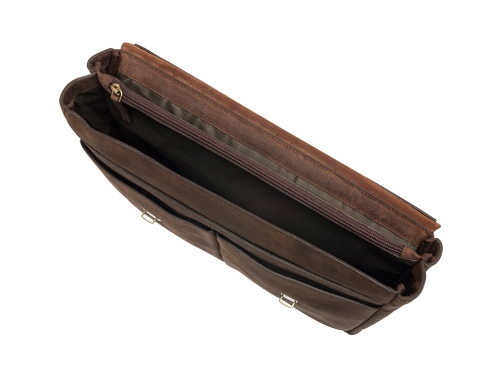 У портфеля есть несколько отделений. Среди них два внутренних, одно из них застегивается на молнию и подходит для хранения ценных бумаг. Также есть три наружных: два спереди (открытых) и одно сзади, которое так же надежно застегивается с помощью бегунка.
