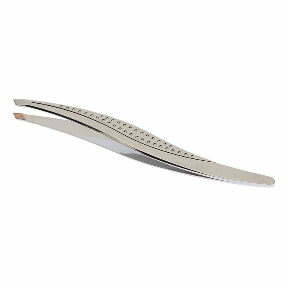 Пинцет с наклонными рабочими кромками аккуратно захватывает каждый отдельный волосок, а при выдергивании не рвёт его. Аксессуар изготовлен из безопасной нержавеющей стали, устойчив к дезинфицирующим процедурам.