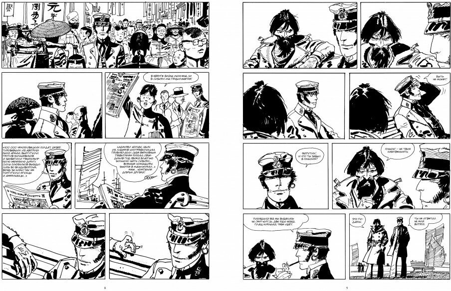 Говоря о «Сибири» сложно подобрать адекватный эквивалент данному слову. Словосочетание «исторический фон» слишком плоское, и не выражает и десятой доли того интеллектуального запаса, который Пратт щедро расплескал по своим страницам. Нет, читателю вовсе не обязательно искать на полках школьный учебник по истории или конспектировать статьи из Википедии (простигосподи) для того, чтобы узнать/вспомнить о заветной мечте Романа Унгерн-Штернберга, кем был атаман Семёнов или за что боролись «Красные фонари» (нет, не квартал, тайная организация). Но объём комикса не бесконечен, а Пратт не ставил перед собой задачу поведать о напряжённом моменте гражданской войны. Для него это - точка во времени и пространстве, полная возможностей, головокружительных взлётов и очень жестких падений. Она пропитана атмосферой авантюризма, и именно её воздухом дышит Корто Мальтезе. Да, исторические персонажи нарисованы скупым набором линий, но при этом они вышли настолько живыми, что граница между исторической правдой и художественным вымыслом кажется почти невидимой. Да и как учит история – реальность порой бывает невероятнее самого смелой фантазии.