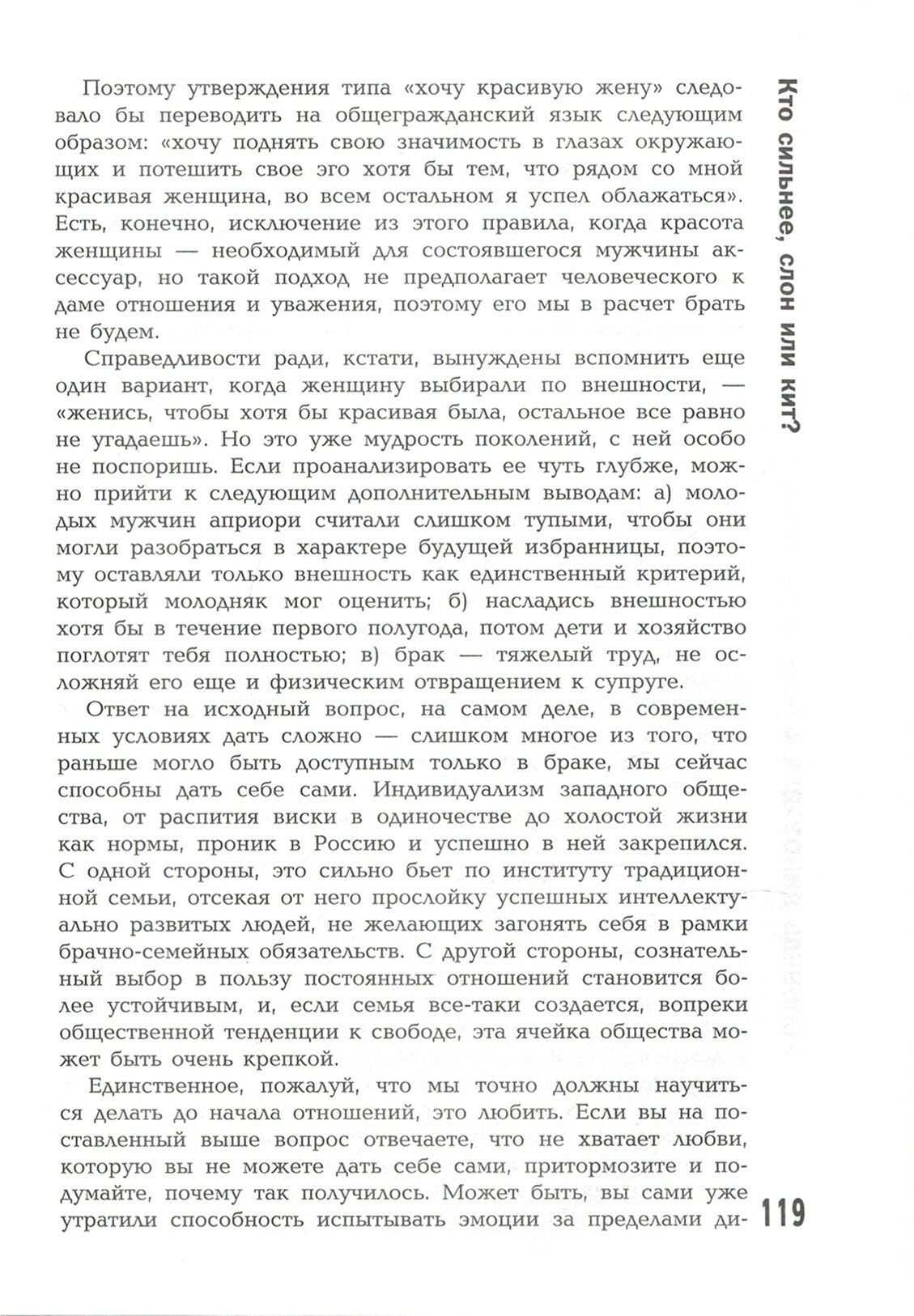 Книга, написанная острым, но правдивым языком, учит оставаться мужчиной в любых ситуациях — в любви, в семье, на работе и в любых кризисах — возрастных, финансовых и пр. Будет полезна как мужчинам, в качестве камертона собственных мыслей, так и женщинам — чтобы помнили.