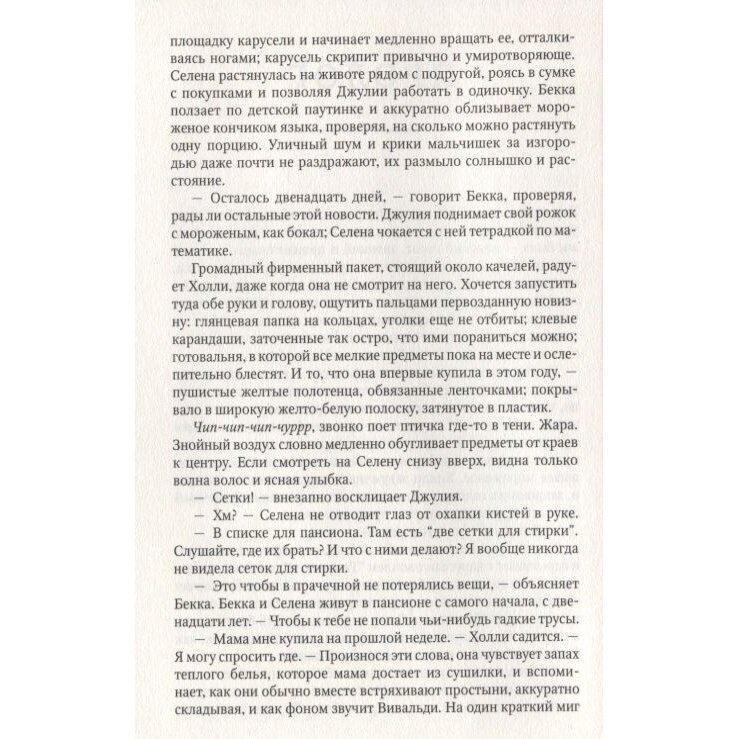 У Таны Френч нет, по сути, конкурентов. Сочетание литературной изысканности и замысловатого сюжета делают ее детективы идеальными. Роман расследует не только саму детективную тайну, но и тайну дружбы, верности, предательства, причем как среди школьниц, так и внутри детективной бригады. Потрясающе продуманный, выверенный роман.