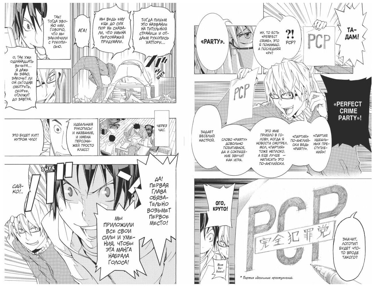 Новый сериал Сайко и Сюдзина утверждают, но, как выясняется, на совещании им едва не отказали! Наши герои продолжают работать над своим произведением до самой публикации, чтобы сделать его еще лучше. В конце концов, новая серия уходит в печать, и остается только ждать отзывов читателей!