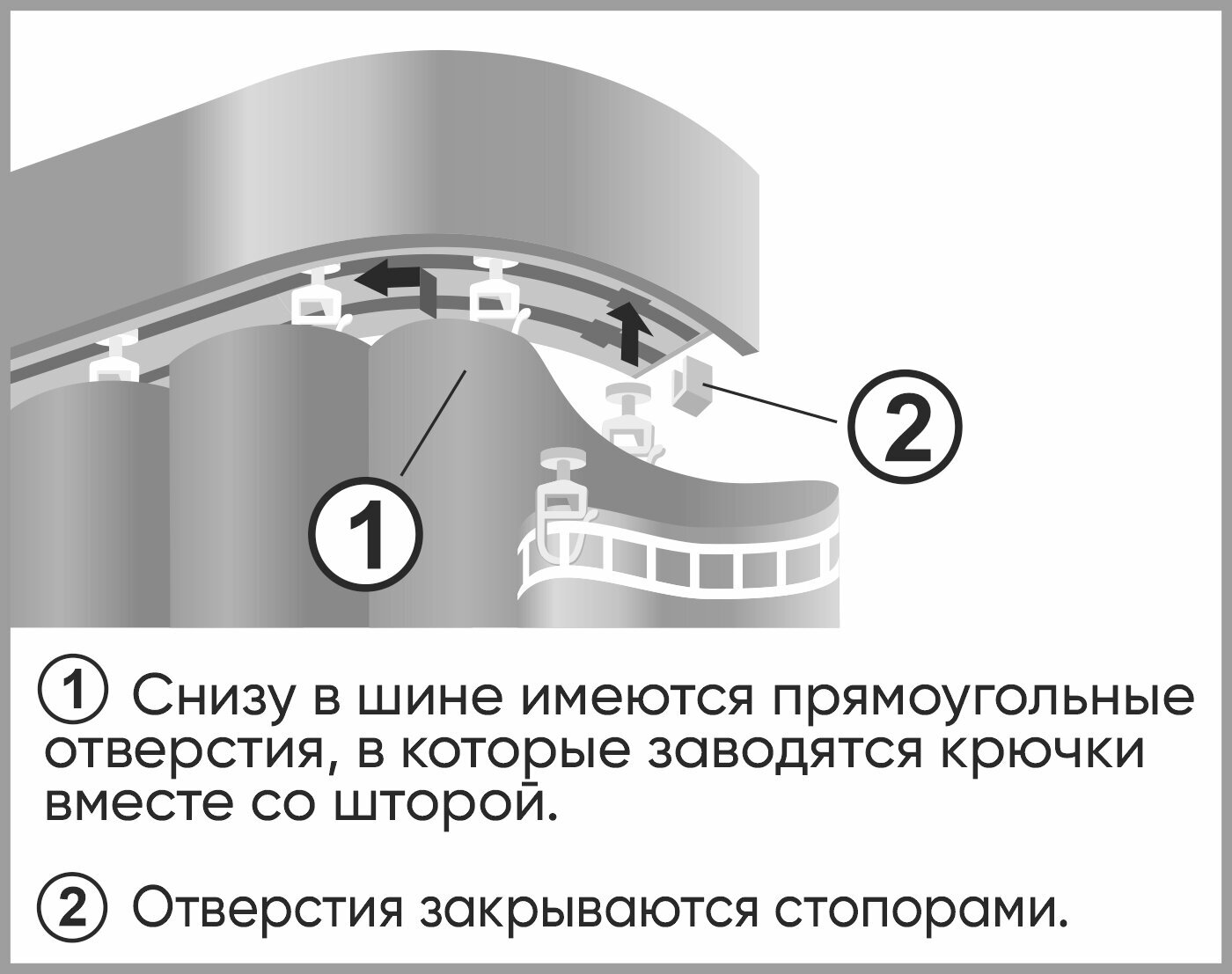 Двухрядный карниз сделает внешний вид штор более гармоничным. Закругленный каркас с закрывающей полочкой выполнен в благородном цвете "мореный дуб", поэтому будет хорошо сочетаться с мебелью из натуральных материалов. Внутри расположена пластиковая шина. Данный карниз устанавливается на потолок, для монтажа к стене необходимо дополнительно приобретать кронштейны.