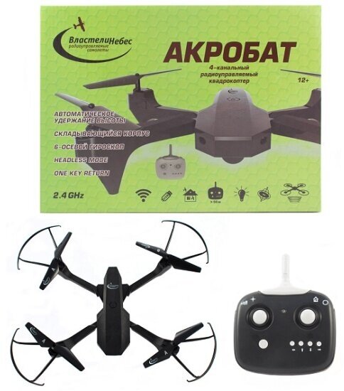 Представляем вашему вниманию крутой радиоуправляемый квадрокоптер "АКРОБАТ". Он легок в сборке и управлении благодаря своей конструкции и удобному пульту с дальностью до 70 метров. "АКРОБАТ" может не только летать вперед-назад, влево-вправо, но и делать сальто на 360 градусов, а также поддерживать высоту и возвращаться в исходную точку по нажатию одной кнопки. Такой замечательный квадрокоптер станет отличным подарком как для ребёнка, так и для взрослого.