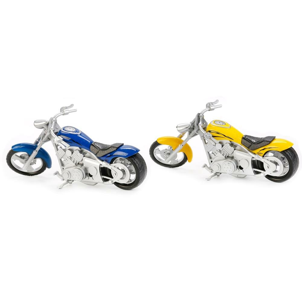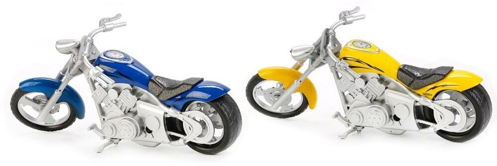 Металлическая модель - миниатюрная копия эпатажного мотоцикла с длинной рамой. Он привлекает внимание ярким дизайном и тщательной детализацией. Игрушка оснащена подвижным элементом. Изучая внешние особенности реалистичной модели, дети расширят свой кругозор. Мотоцикл станет основой для интересной сюжетной игры, развивающей фантазию и мелкую моторику рук детей. Рекомендовано детям от 3 лет. Внимание! Товар в ассортименте. Возможности выбора определенного товара нет.