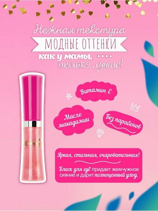 Принцесса собирается на бал! Частичка волшебства в твоей косметичке. Увлажняет губы и защищает от непогоды, необычайно нежный блеск и легкий оттенок.