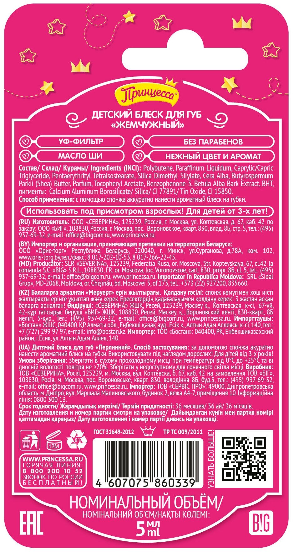 Блеск для губ Принцесса со спонжем Жемчужный 5 мл (234654)