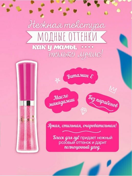 Принцесса собирается на бал! Частичка волшебства в твоей косметичке. Увлажняет губы и защищает от непогоды, необычайно нежный блеск и легкий оттенок.