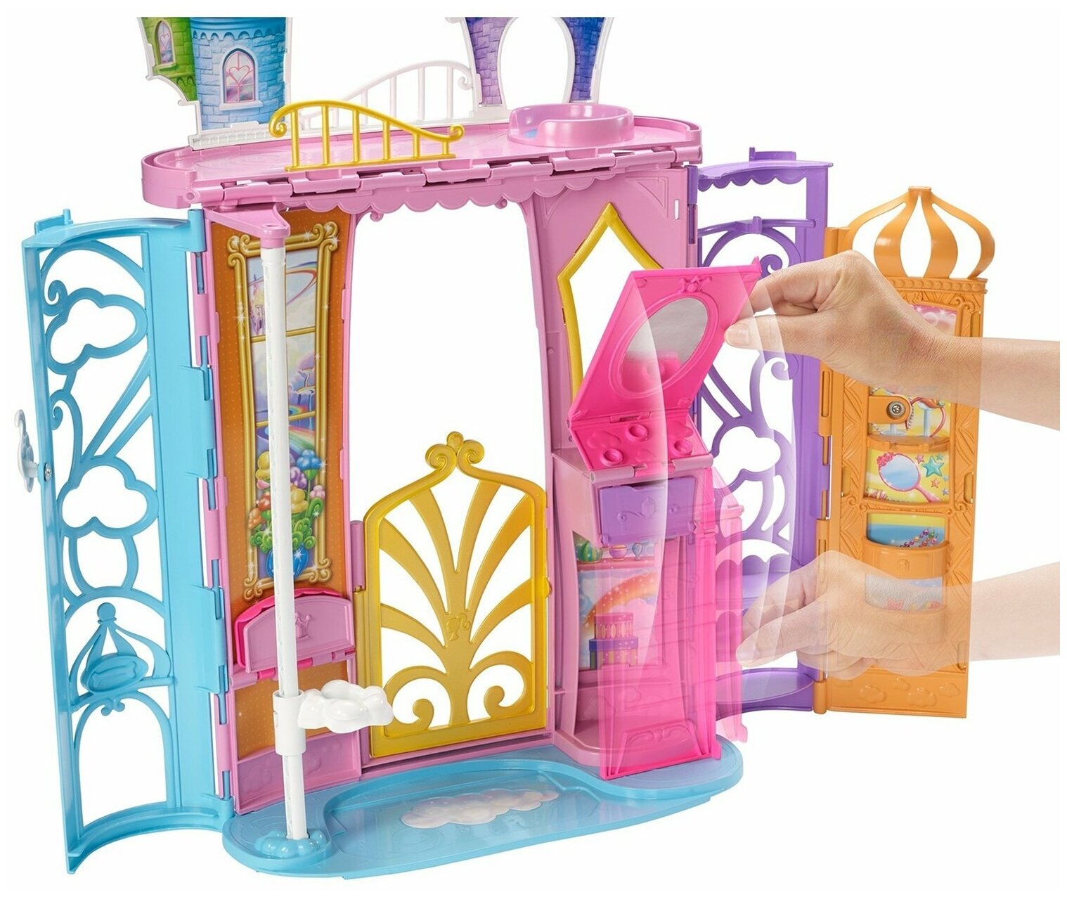 Переносной радужный дворец Mattel Barbie. Радужная принцесса Barbie (продается отдельно) и ее щеночек Хани могут вместе править королевством Радужной бухты, с комфортом расположившись в собственном замке!
