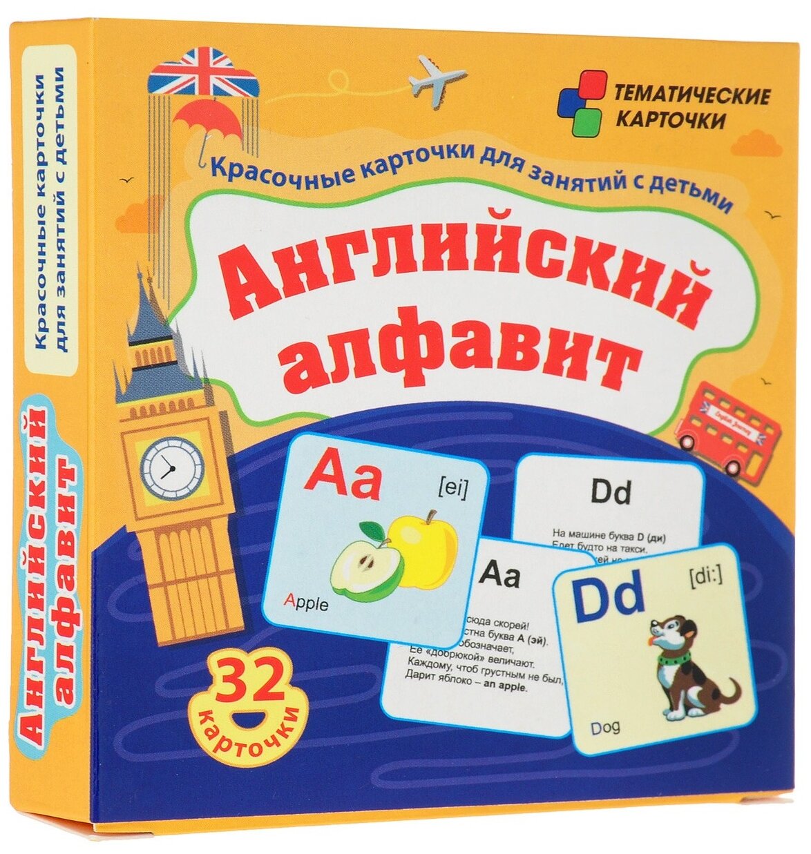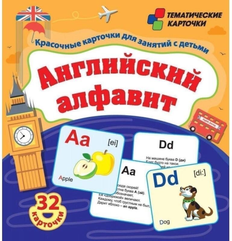 Английский алфавит. 32 красочных развивающих карточек для занятий с детьми. ДО (без автора); Учитель, 2020