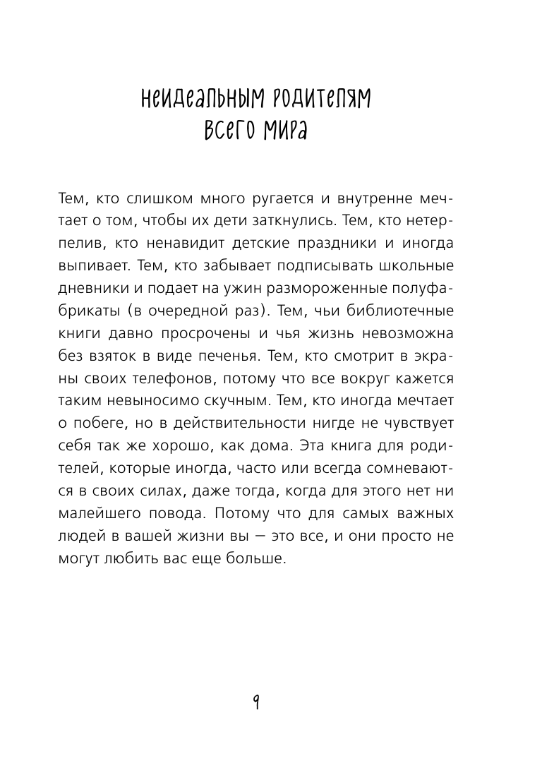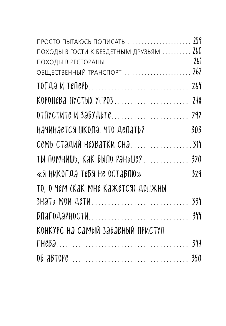 Это книга о воспитании детей, которая не содержит абсолютно никаких полезных советов. Вместо этого она содержит анекдоты и иллюстрации с родительского фронта, которые демонстрируют, что вполне возможно одновременно и любить своих детей всем сердцем, и в то же время раздражаться по пустякам.