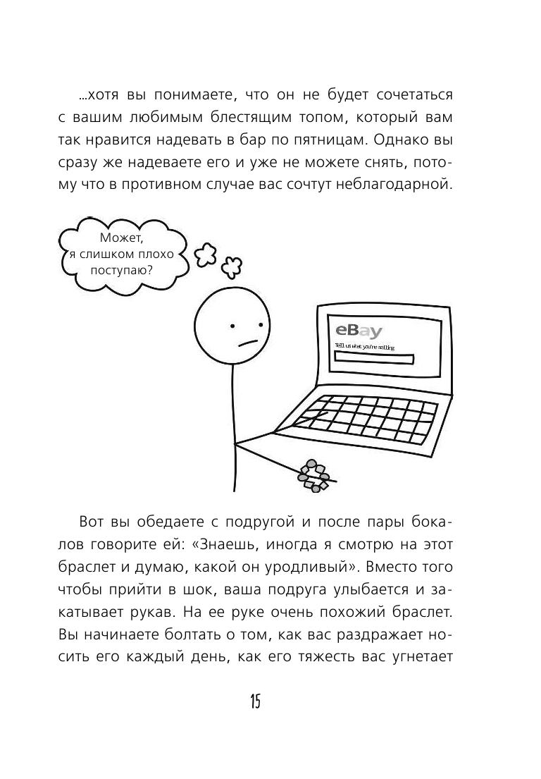 Автор отчаянно пыталась уловить баланс между остроумием и банальным нытьем? Что ж, не удалось. Читать книгу неприятно – даже при том, что часть моих мыслей и проблем вполне себе совпадала с изложенным. Иллюстрации могли бы спасти ситуацию – но только если из «книги» убрать весь текст. Или процентов 80. Ознакомительного фрагмента предостаточно, чтобы понять общий стиль автора (хотя я по-честному искала и читала еще отрывки, в надежде, что они хоть на толику улучшат мое впечатление о книге… но чуда так и не случилось) – поэтому я настоятельно рекомендую ознакомиться перед покупкой всей книги.