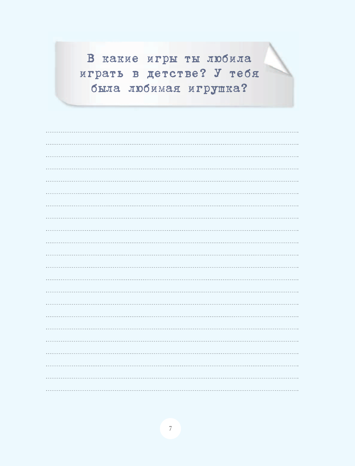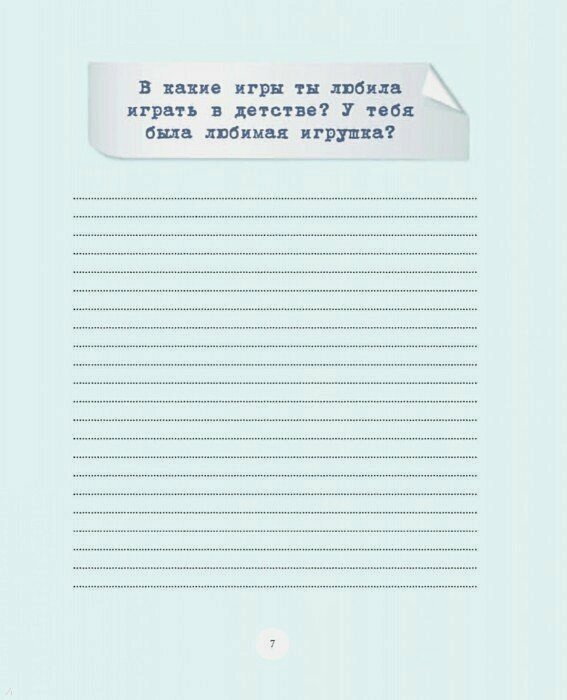 Много интересных вопросов о маме, её детстве, юности, увлечениях и личности. Достаточно места и для записей, и для фото, и для интересных заметок.