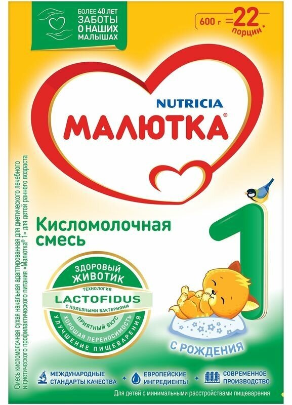 Молочная смесь Малютка Малютка 1 кисломолочная с рождения 600 г 1 шт Кисломолочная 1