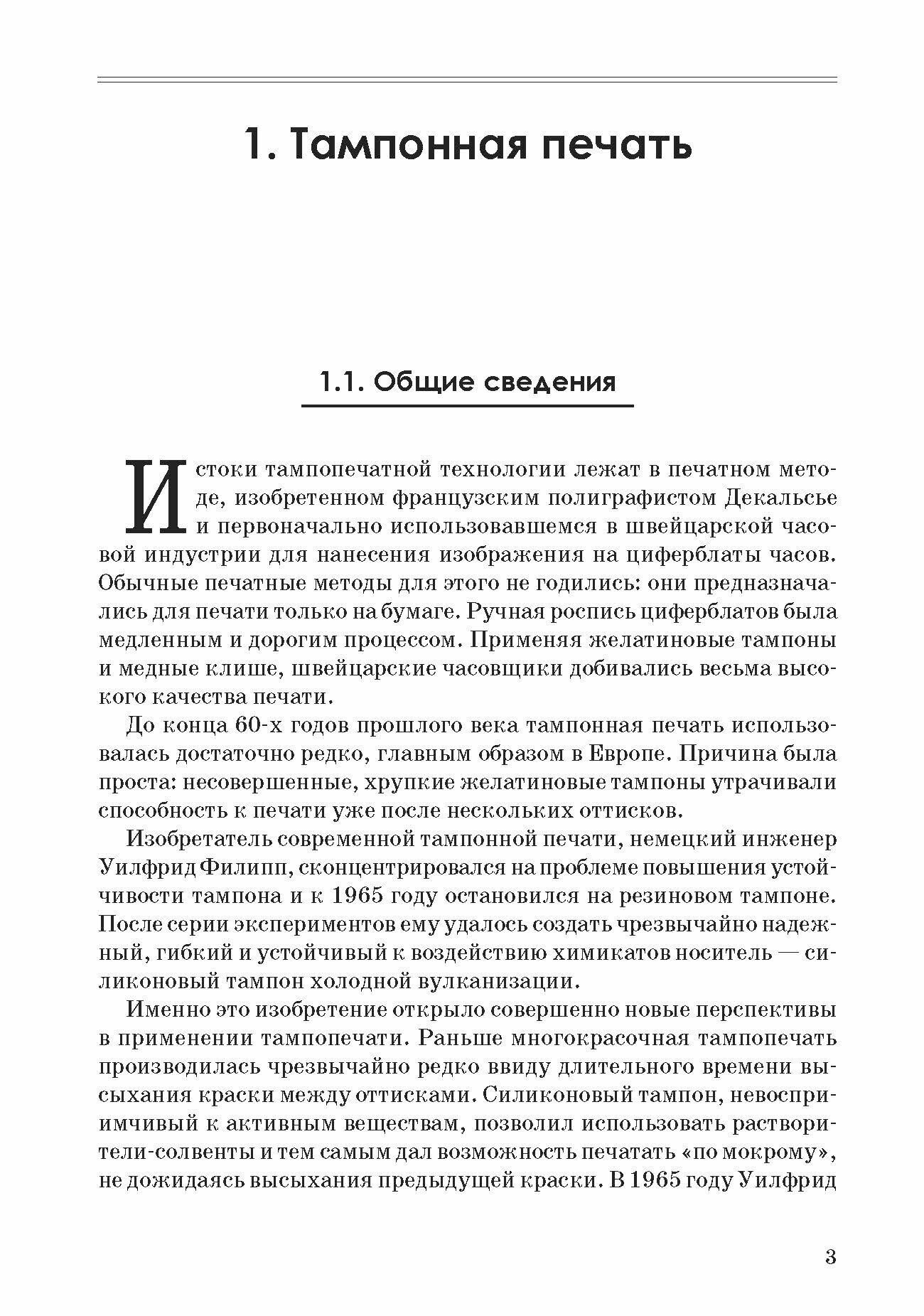 с его слов. Книга начинается с интересного обобщающего введения, обращаясь к истокам возникновения печатного дела. Отлично прописаны нюансы работы, составлены актуальные марки расходных материалов, указываются корректные этапы работы. Книга подходит как для новичков, так и для профессионалов своего дела.