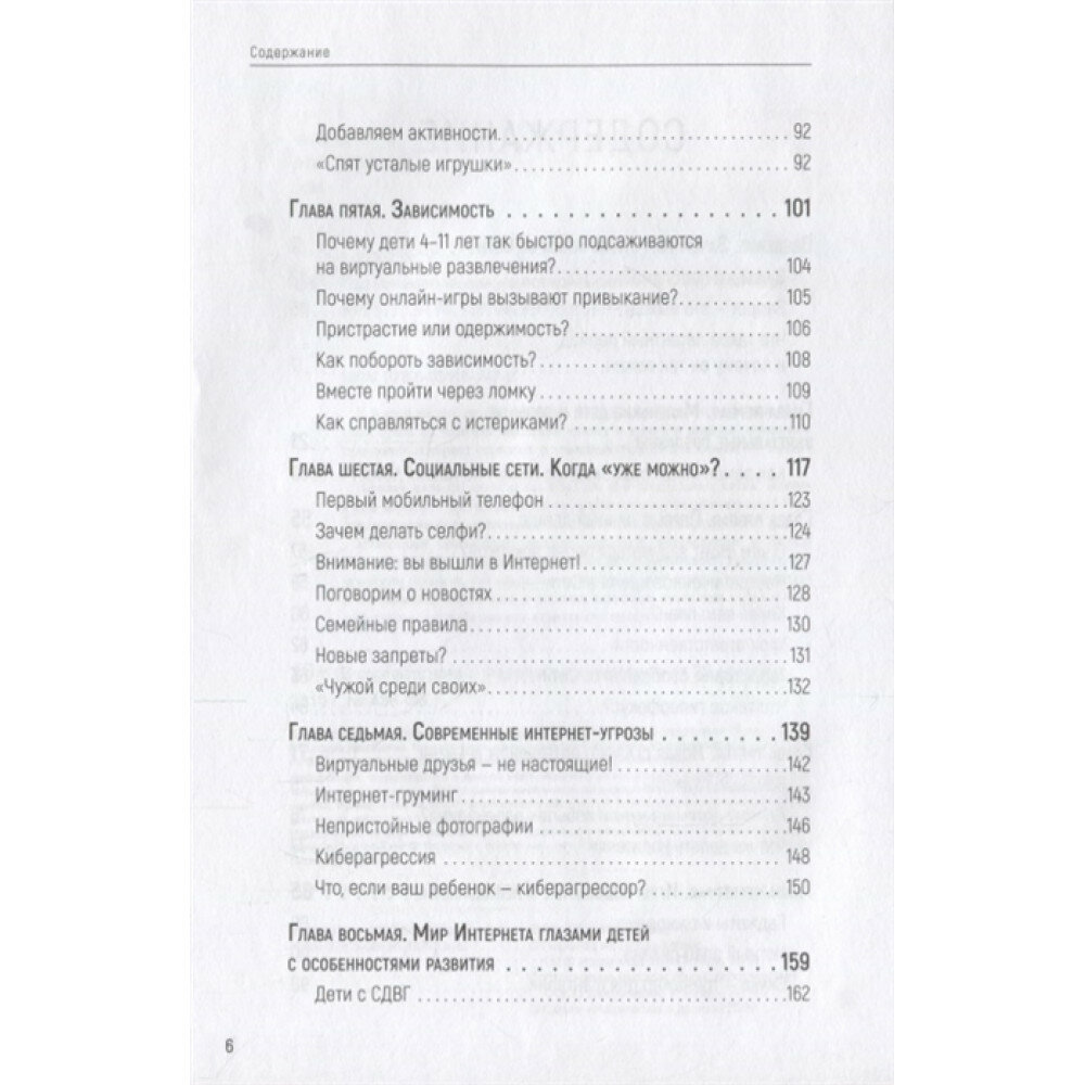 Подробная и без воды книга о насущной проблеме. Темы выбраны самые актуальные - покупка первого гаджета, сколько времени можно позволить ребенку находится за компом или в сети, тревожные звоночки для каждого возраста, когда можно заводить соц сети, как распознать зависимость, интернет-угрозы, особенности использования интернета детьми с ообенностями развития, ограничения и поощрения, обучение помощью гаджетов, и очень важная глава о личном примере здорового отношения с гаджетами. Лично для меня книга стала оч полезной, имея первоклассника. Она позволяет предвидеть многие проблемы и заручится опытом психолога. Думаю, я буду возращаться к ней снова и снова по мере взросления моего ребенка.
