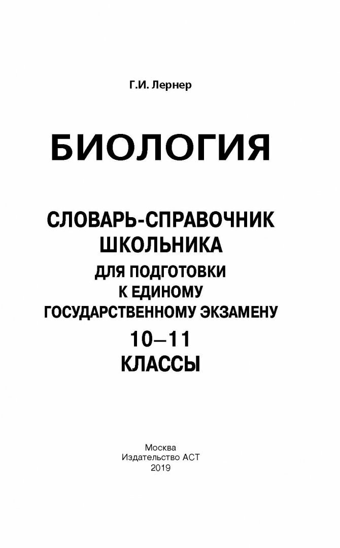 ЕГЭ. Биология. Словарь-справочник школьника для подготовки к ЕГЭ (Георгий Исаакович Лернер); АСТ, 2018
