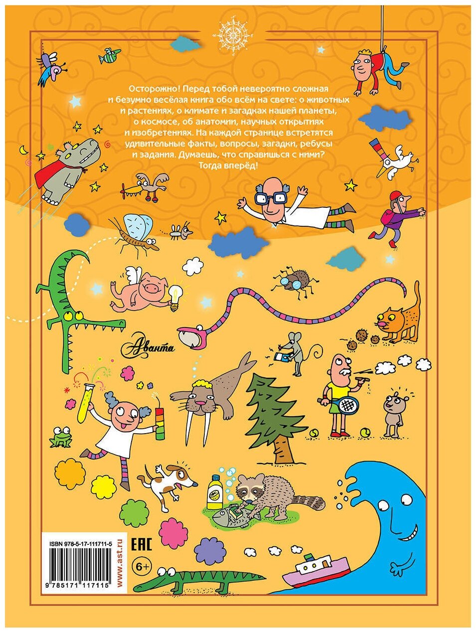 Осторожно! Перед тобой невероятно сложная и безумно весёлая книга обо всём на свете: о животных и растениях, о климате и загадках нашей планеты, о космосе, об анатомии, научных открытиях и изобретениях... На каждой странице встретятся удивительные факты, вопросы, загадки, ребусы и задания. Думаешь, что справишься с ними? Тогда вперёд!