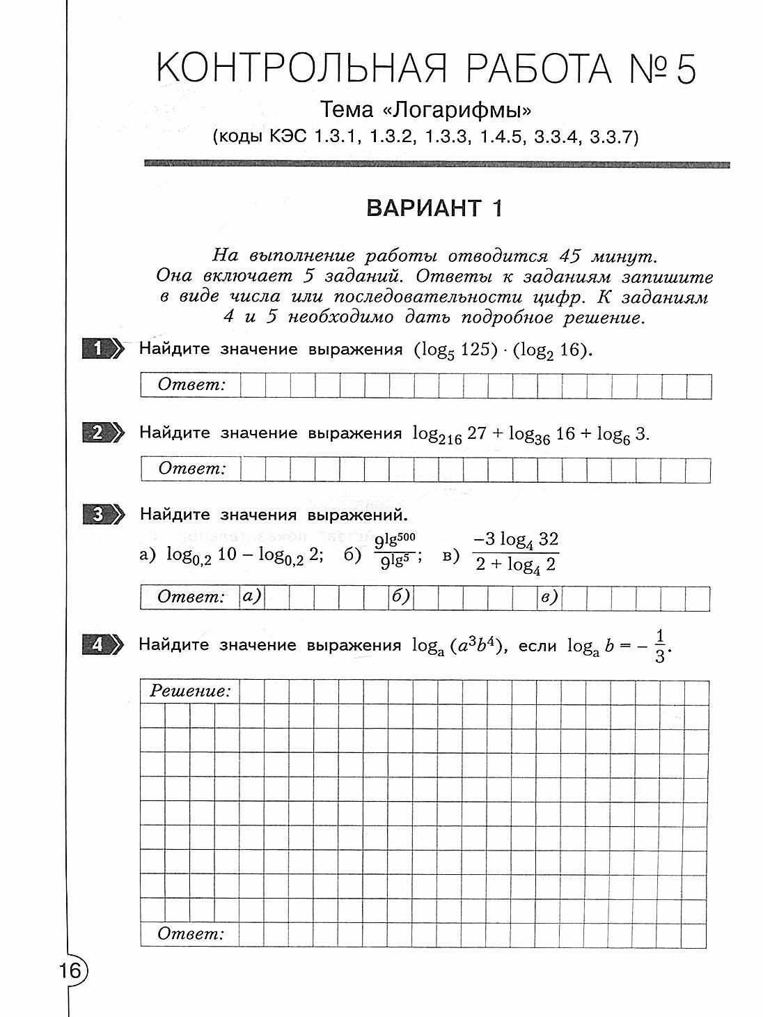 Тетрадь тематических тестовых работ предназначена для мониторинга предметных достижений учащихся 10 классов по основным темам курса алгебры и позволяет целенаправленно готовить школьников к различным процедурам внутренней и внешней оценки, в том числе к итоговым работам за год, ЕГЭ, ВПР. Тестовые задания разработаны на основе Кодификатора элементов содержания и требований к уровню подготовки выпускников образовательных организаций для проведения единого государственного экзамена по математике. Благодаря этому проверяется только тот учебный материал, который подлежит обязательному контролю. В конце тетради дан краткий методический материал для педагога с планами работ, ответами и системой оценивания. Полная спецификация работ представлена на сайте издательства в разделе "Текущий и тематический контроль". Разработанные на основе кодов КЭС планы тематических тестовых работ позволяют оптимизировать контрольно-оценочную деятельность учителя и являются готовыми контрольно-измерительными материалами для обработки данных мониторинга оценки качества образования в программе Microsoft Excel и в автоматизированных информационных системах, включая МСОКО. Тетрадь разработана к учебнику "Алгебра и начало математического анализа. 10 класс" (авторы С. М. Никольский, М. К. Потапов, Н. Н. Решетников, А. В. Шевкин). Вместе с тем ее материалы могут использоваться и при работе с другими учебно-методическими комплектами.