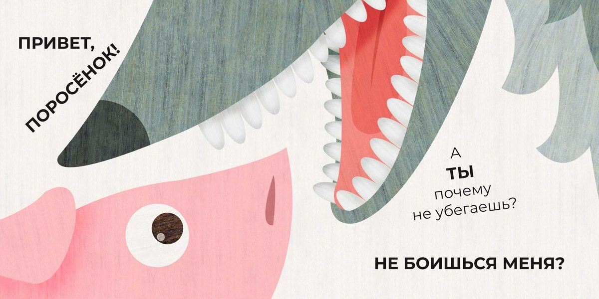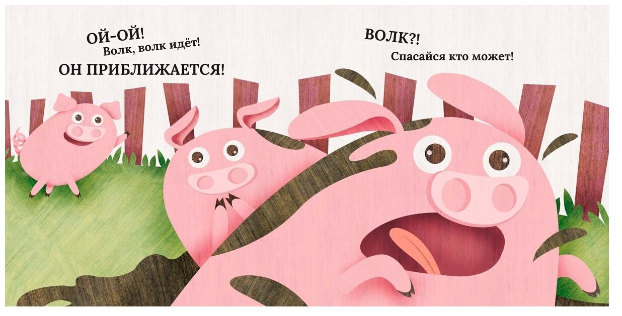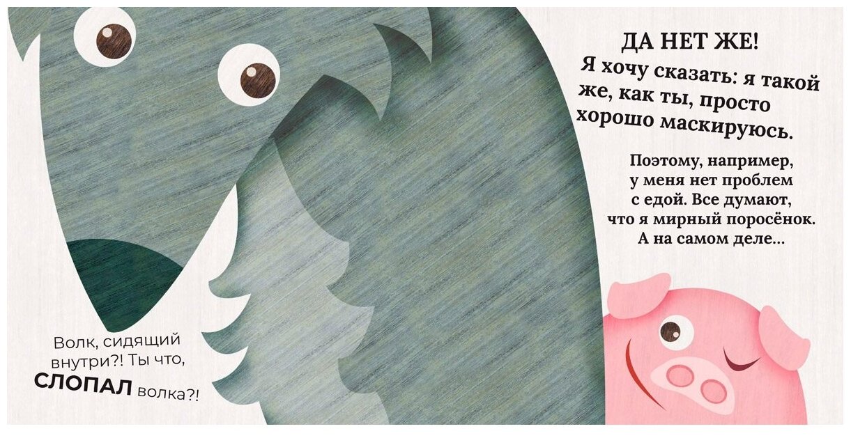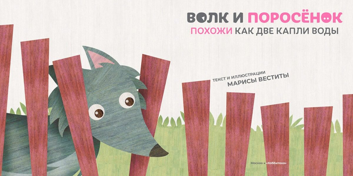 Эту весёлую историю придумала и нарисовала иллюстратор из Италии Мариса Вестита. В этой книге художница показывает детям, как могут подружиться абсолютно разные создания. Волк и поросёнок, встретившись однажды на лужайке, неожиданно обнаружили, что похожи как две капли воды!