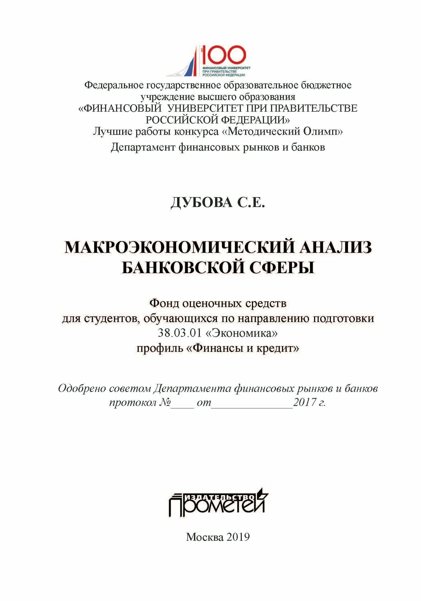 Макроэкономический анализ банковской сферы. Фонд оценочных средств для студентов обучающихся по направлению подготовки 38.03.01 "Экономика" профиль "Финансы и кредит". Учебное пособие (Светлана Евгеньевна Дубова); Прометей, 2019