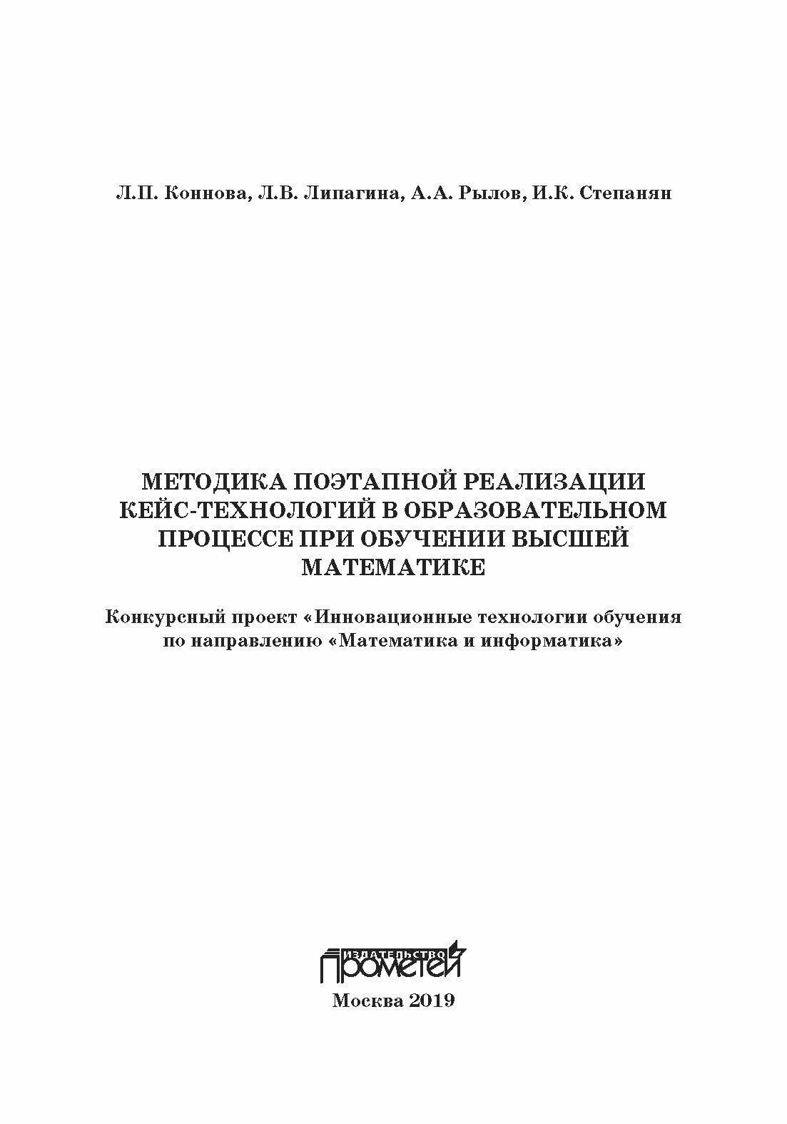 Методика поэтапной реализации кейс-технологий в образовательном процессе при обучении высшей математике. Конкурсный проект "Инновационные технологии обучения по направлению "Математика и информатика" (Коннова Лариса Петровна, Липагина Лариса Владимировна, Рылов Александр Аркадьевич, Степанян Ирина Киримовна); Прометей, 2019