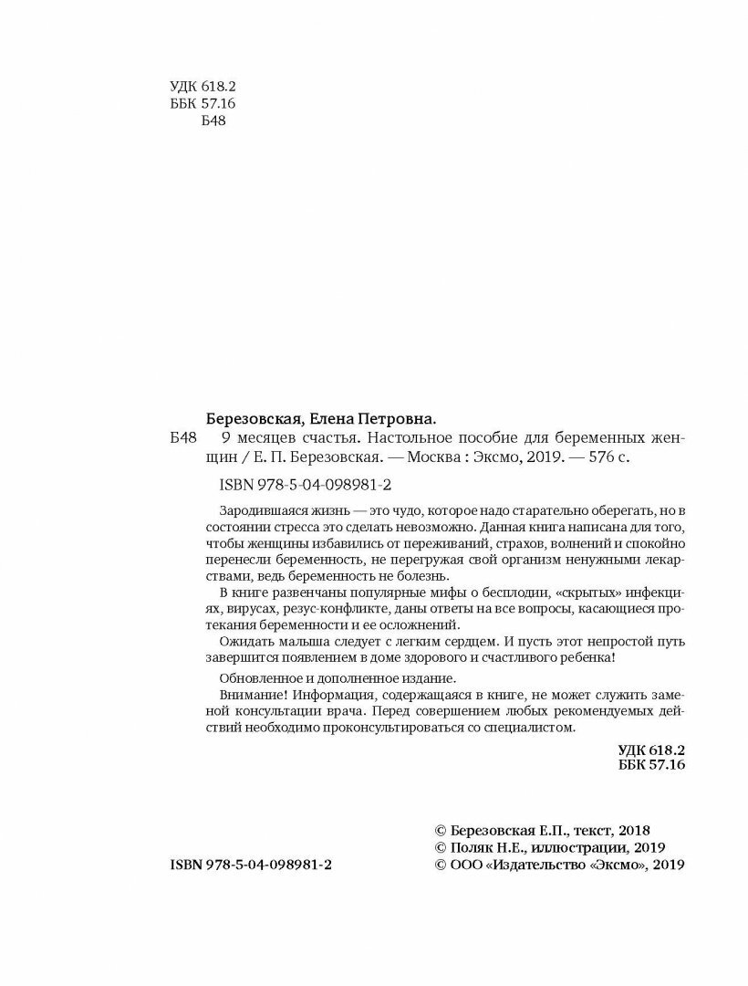 9 месяцев счастья. Настольное пособие для беременных женщин. Обновленное и дополненное издание (Березовская Елена Петровна); ООО "Издательство "Эксмо", 2020