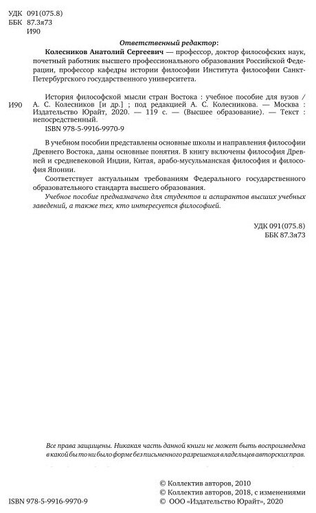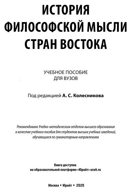 История филосовской мысли стран Востока. Учебное пособие (Сергей Леонидович Бурмистров); ЮРАЙТ, 2018
