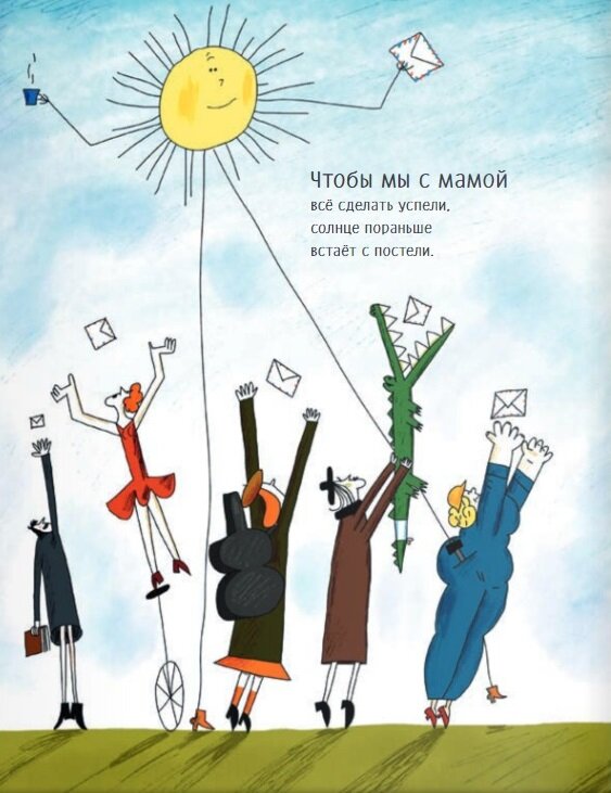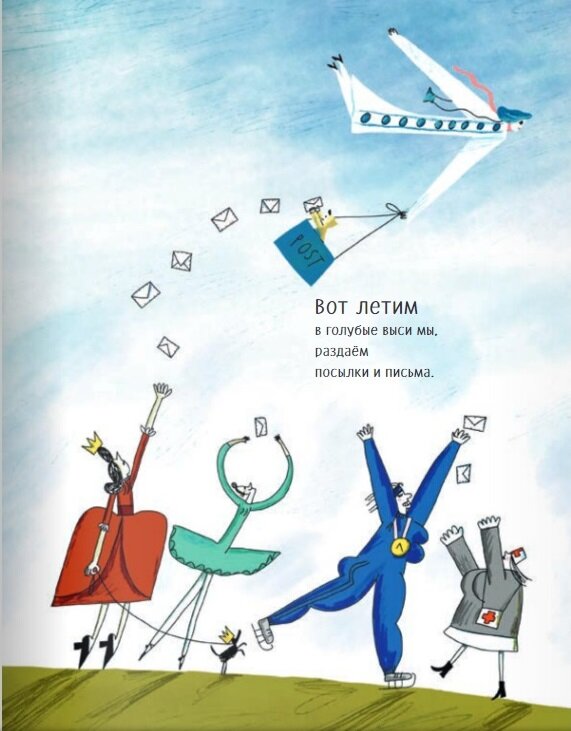 Книга супер! Моей двухлетней дочери очень понравилась такая фантазия мальчика про свою необыкновенную маму. На одной из первых страниц нарисованы мамы разных профессий, из страницы в страницу они появляются в местах, где пролетает мама-самолет. Моей дочери нравится находить везде маму-доктора.