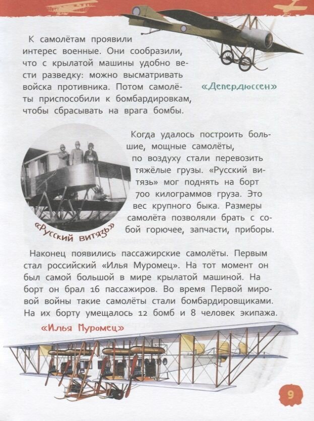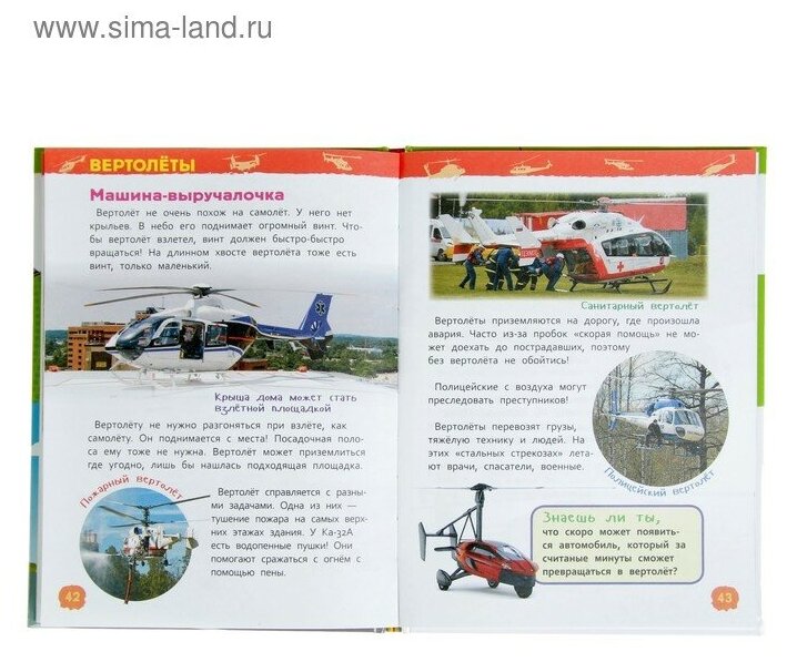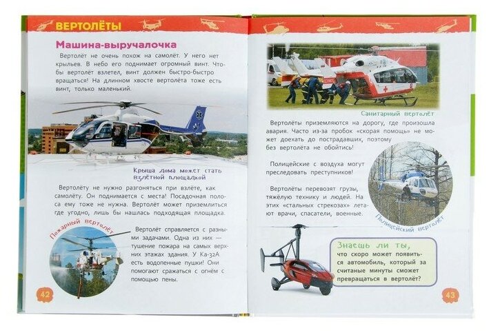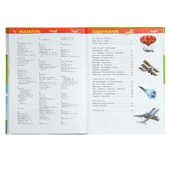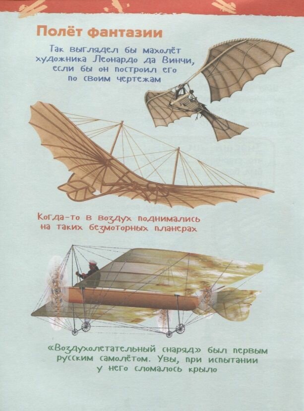 Прекрасные, красочные изображения, на каждом развороте есть и картинки, и интересные факты, а так же описание многих воздушных средств (как называются и из каких элементов состоят). Интересно и детям и взрослым. Удобный формат, поместится даже детский рюкзачок. Книги интересны и познавательны, как раз то, что нужно детям. -