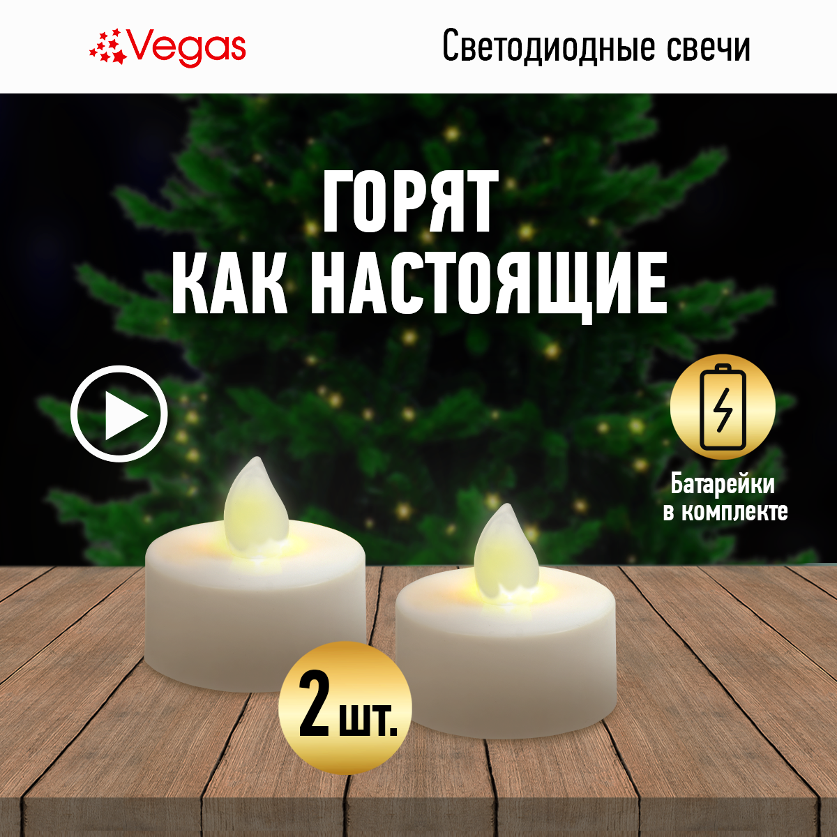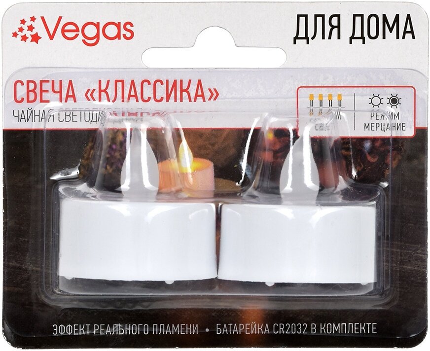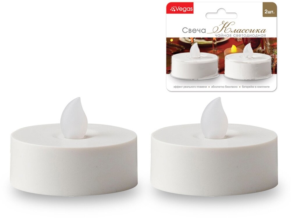 Внутреннее новогоднее освещение Vegas Свеча светодиодная классика 2 шт 10,5х8,5х4 см