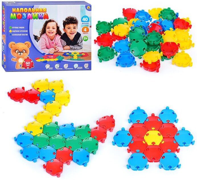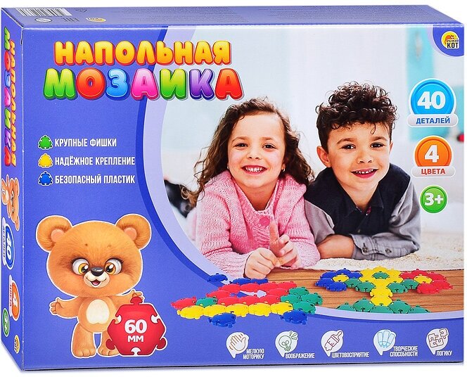 Напольная мозаика – увлекательная развивающая игра для самых маленьких! Эта мозаика открывает перед малышом неограниченные возможности создания собственных композиций. Конструкция мозаики позволяет с лёгкостью скреплять и фиксировать детали, которые состоят из высококачественных материалов, абсолютно безопасных для здоровья ребёнка.