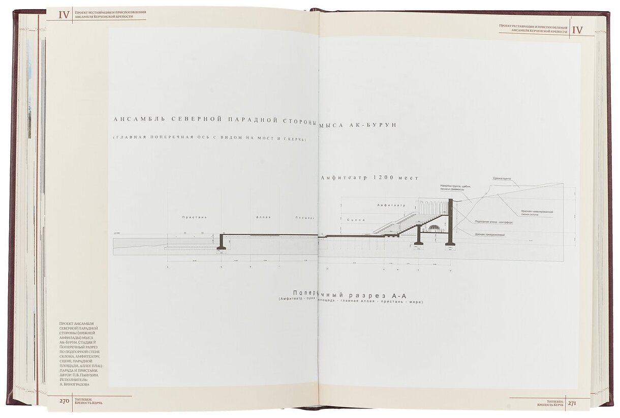 Настоящее издание является вторым томом дилогии, приуроченной к 200-летию выдающегося российского военного инженера Э.И. Тотлебена, и представляет собой комплексное научное исследование крупнейшего в мировой истории памятника фортификационного искусства второй половины XIX века — Крепости Керчь, занимающей территорию 420 гектаров. В книге проведен всесторонний анализ объекта: рассматриваются картографические документы, связанные с укреплением береговых черноморских границ России, подлинные генеральные планы и локальные проектные чертежи крепости, письменные источники. Большинство документов публикуется впервые. Приводятся материалы Научной экспедиции МАРХИ, работающей в крепости под руководством автора: дневниковые записи, материалы фотофиксации, аэрофотосъемки, рабочие зарисовки, обмерные чертежи. Практическим выходом архивных и экспедиционных изысканий стал подробно изложенный в книге Проект реставрации и приспособления Керченской крепости, выполненный в контексте современных перспектив развития Крыма, Керчи и последних мировых тенденций использования памятников фортификационного искусства.