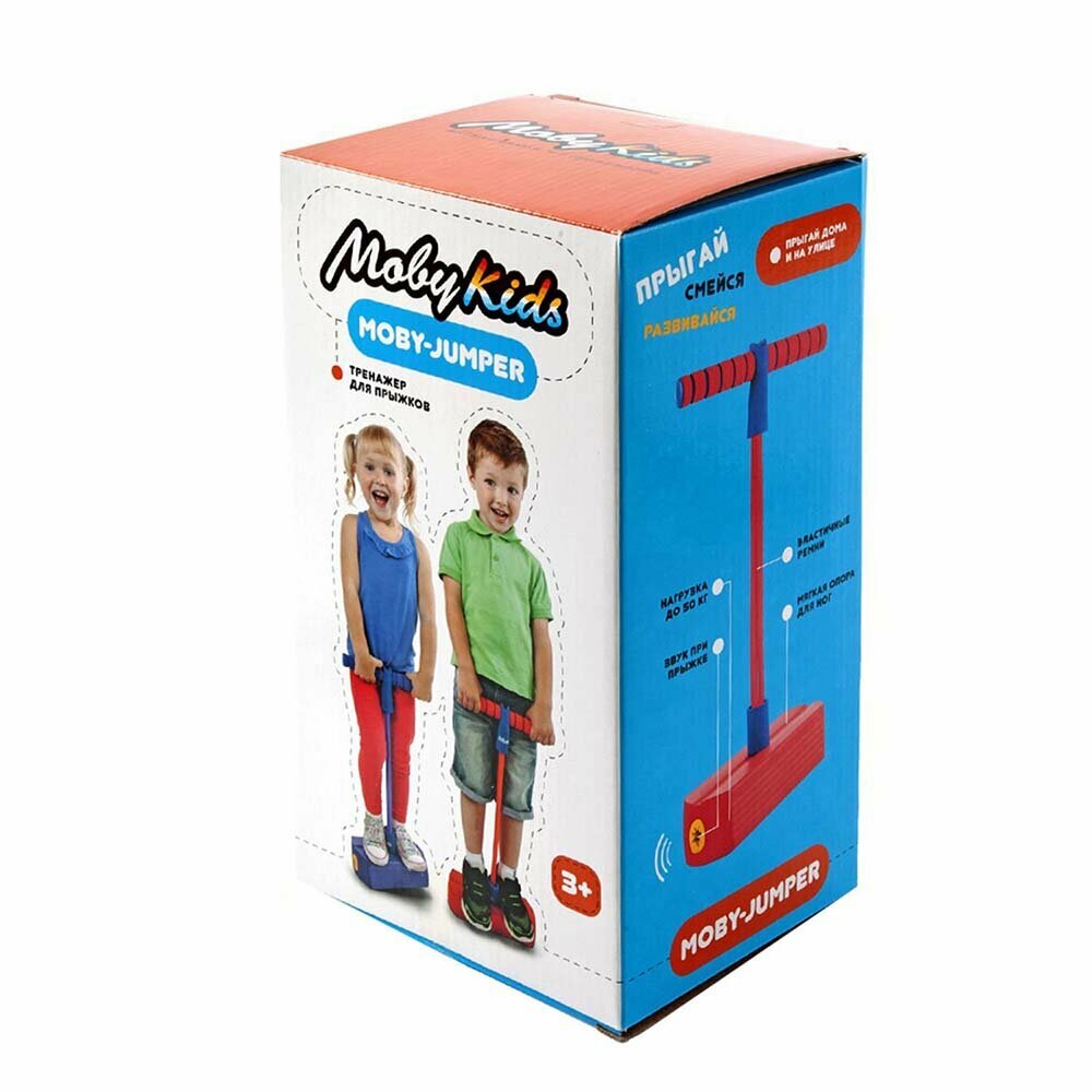 Тренажер для прыжков Moby-Jumper от производителя Moby Kids отлично подойдет для активного ребенка, ведь с его помощью малыш сможет не только тренировать ножные мышцы, но и весело проводить время. Данный тренажер весьма легкий, что делает его подходящим даже для ребенка от трех лет. Каждый прыжок сопровождается звуковым эффектом, поэтому малыш сможет с легкостью считать количество сделанных толчков.