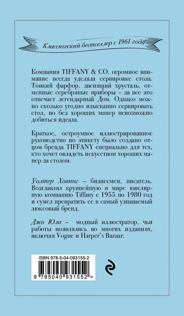 Tiffany. Искусство хороших манер за столом (Юла Джо (иллюстратор), Ховинг Уолтер, Пудов А.В. (переводчик)); Эксмо, 2022