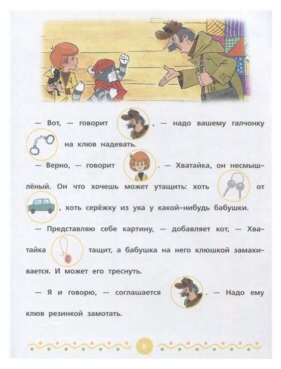 В Простоквашино живут-поживают дядя Фёдор, кот Матроскин, пёс Шарик и другие знаменитые герои Э. Успенского. Прочитайте малышу маленькие сказочные истории о жителях этой деревни и попросите его назвать вслух те слова, которые заменены картинками. Детки с удовольствием послушают эти произведения, рассмотрят большие картинки, а заодно увеличат свой словарный запас, смогут научиться правильно излагать свои мысли и потренируют воображение!