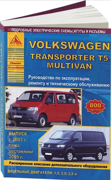Volkswagen Transporter T5 / Multivan Выпуск 2003-2015 рестайлинг с 2009 дизельными двигателями 19; 20; 25 л. Эксплуатация. Ремонт. ТО (Коллектив авторов); Атласы автомобилей, 2005