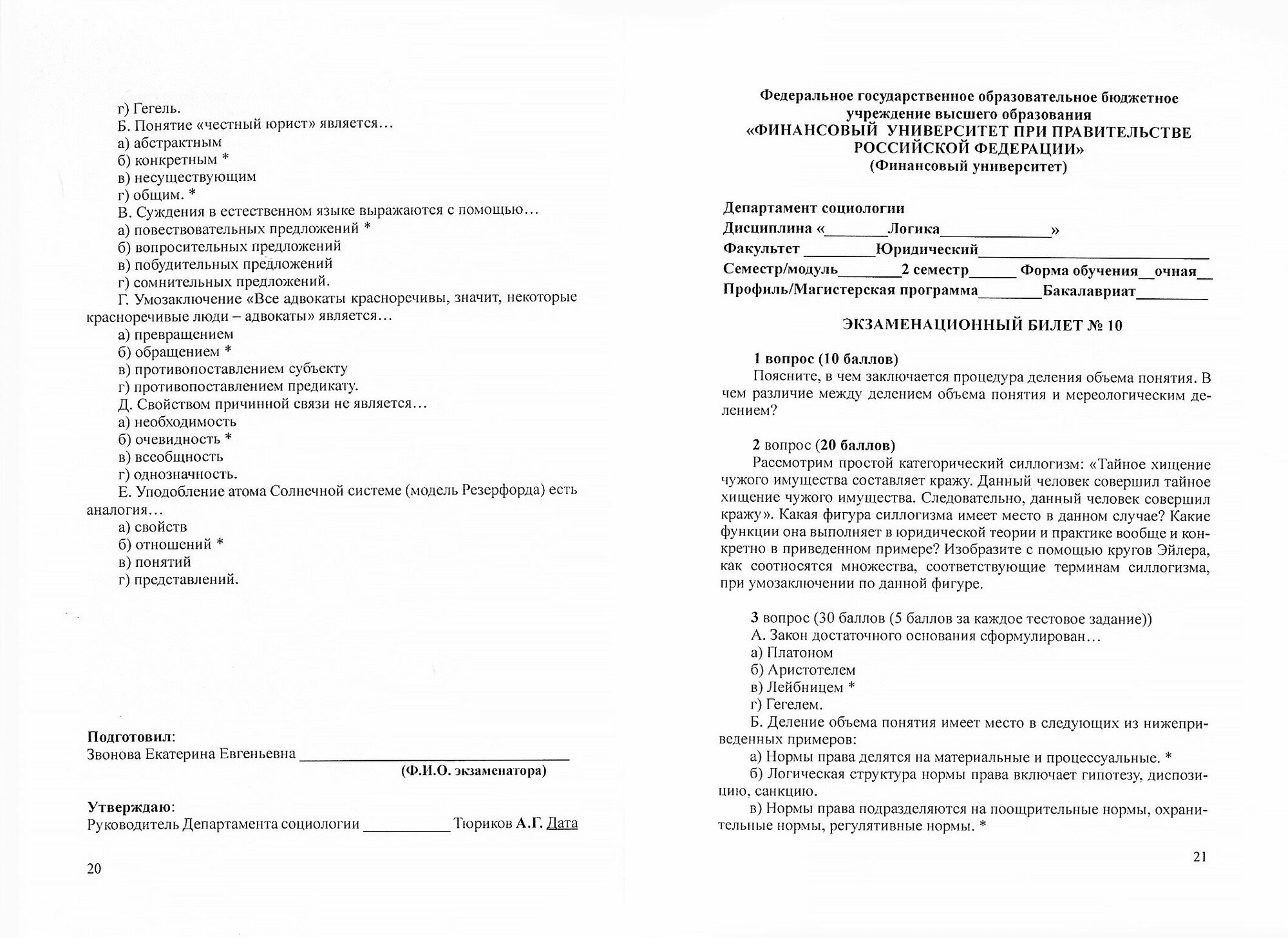 Экзаменационные билеты по дисциплине "Логика" для промежуточной аттестации студентов бакалавриата (юридические специальности). Учебное издание (Звонова Екатерина Евгеньевна); Прометей, 2019