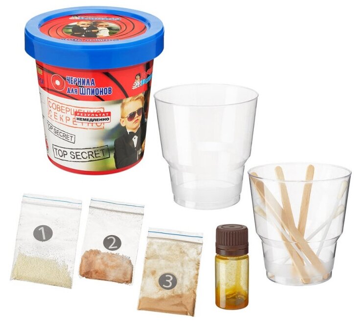 В компактных наборах серии Лучшие эксперименты, результат эксперимента ребенок видит практически немедленно. Опыт не требует сложной предварительной подготовки, а сам набор содержит все необходимые компоненты для того, чтобы приготовить два вида шпионских чернил. Сначала мы делаем невидимые симпатические чернила, надпись которыми чудесным образом появляется при обработке проявляющим веществом, затем готовим исчезающие чернила и делаем надпись, которая исчезает при обработке специальным реагентом. В наборе содержится простая пошаговая инструкция.