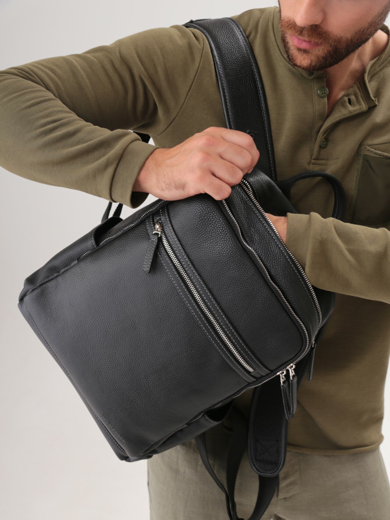 Рюкзак мужской практичная модель на каждый день. Кожаный рюкзак продуман до каждого кармашка.Классический рюкзак мужской, небольшой, с удобными плечевыми ремнями.Выполнен из натуральной кожи премиального качества.Рюкзак мужской с двумя отделениями на молнии. Внутри одного отделения потайной карман на молнии,отделение на липучке и два кармана.В другом отделении открытый карман.Снаружи спереди карман на молнии, сзади карман на молнии и по бокам открытые кармашки. Ручка для переноски и плечевые регулируемые лямки 90см.Подойдет рюкзак мужской маленький в дорогу, дорожный, для путешествий, в школу для подростка, для учебы, мальчиков и пап. Отлично носится на работу в офис или колледж, хорошо держит форму, влагостойкий вместительный и функциональный. Много карманов позволят спокойно вместить в маленький кожаный портфеле мужском на спину или через плечо смартфон телефон и аксессуары, кошелек или документы.Рюкзак отлично подойдет как ранец школьный для мальчика, подростка и взрослого юноши, а так же как шоппер с отделениями и необычная кросс-боди сумка.Зачастую наш универсальный городской рюкзак используют как спортивный для фитнеса или йоги. Можно носить на плечо как сумку-слинг с одной лямкой. Модная вещь отлично дополнит ваш повседневный гардероб. Стильный рюкзак на каждый день будет отличным подарком любимому другу юноше брату папе. На любой праздник или день рождения 14 февраля или 23 февраля. Рюкзак мужской прочный, отлично держит форму. Рюкзак с удобными регулируемыми плечевыми ремнями-лямками, которые можно отрегулировать так, как комфортно вам и вашим детям, так как аксессуар можно использовать в качестве рюкзака школьного для подростка.Аксессуар может использоваться в качестве рюкзака городского повседневного, а также рюкзака мужского спортивного.Рюкзак городской будет отличной палочкой выручалочкой, ведь в него поместятся все необходимые вещи на прогулку с ребенком. Ручка расположена сверху, поэтому может использоваться, как сумка рюкзак мужская.Вы сможете разместить в дорожном рюкзаке очень много вещей.Стильная фурнитура завершает дизайн этого уникального рюкзака.Такая сумка подчеркнет индивидуальность владелицы,не нарушив сторгий дресс код. Для предпочитающих активный образ жизни легко сочетать этот аксессуар со спортивным костюмом или худи.Кроссовки и джинсы также создадут с таким рюкзаком цельный образ. Кожа производится на собственном кожевенном заводе, что позволяет сделать цены на изделия максимально демократичными.