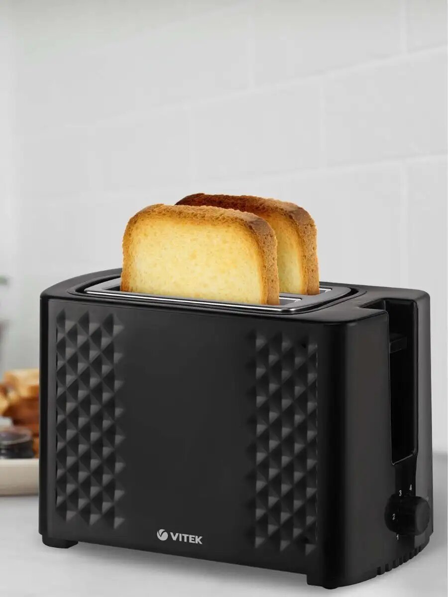 Аппетитный сэндвич или же булочка со сладкой начинкой - основа практически любого завтрака, равно как и чашка горячего кофе. Электрический тостер Vitek поможет вам приготовить вышеозначенные блюда. Ломтики хлеба прожариваются равномерно с обеих сторон благодаря наличию функции автоматической центровки. Степень прожарки можно выставить вручную. Также присутствует возможность подогрева хлеба или булочек.